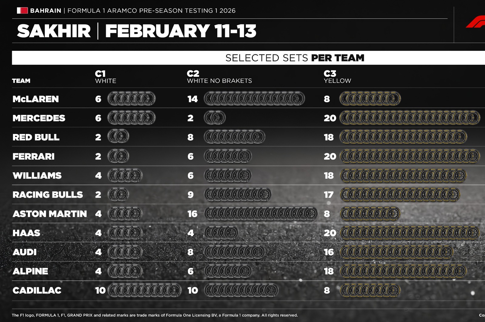 Il faudra attendre la seconde session (du 18 au 20 février) pour que les écuries aient accès à l'ensemble de la gamme de pneus slicks, à savoir du C1 au C5.