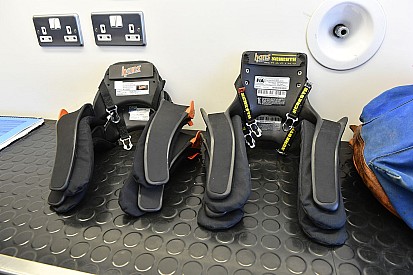 Luke Browning avec le HANS à la main avant de monter dans sa voiture.